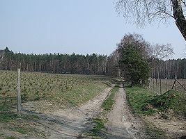 Wenn Sie den Kiefernbestand verlassen kreuzen Sie den Weg nach von der Spinne nach Hartensdorf.