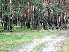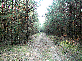 Sie folgen dem Weg fast geradeaus zu einem Kiefernbestand.