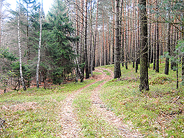 Der im Bild dargestellte Hügel hat eine Höhe von 101,1 m ü.NN und ist damit fast so hoch wie der Dachsberg mit 103,5 m üNN. Vor diesem Hügel biegen Sie rechts ab und folgen dem Waldweg.